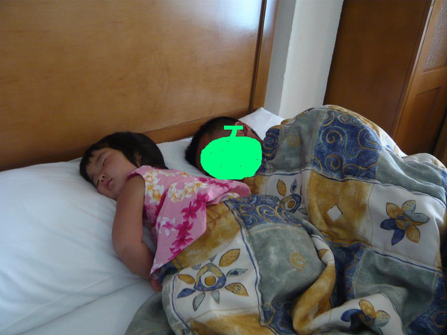 毎日たっぷりとプールで遊んで、お昼ごはんを食べた後は親子で仲良くお昼寝。