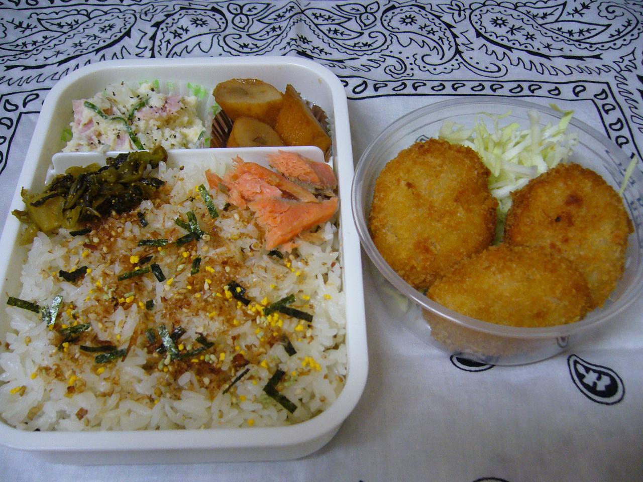 ・ふりかけごはん(からし高菜とシャケのっけ)