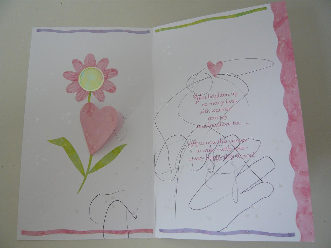 開けてみたら 可愛い母の日カードにヒメの手形とお絵かきが。