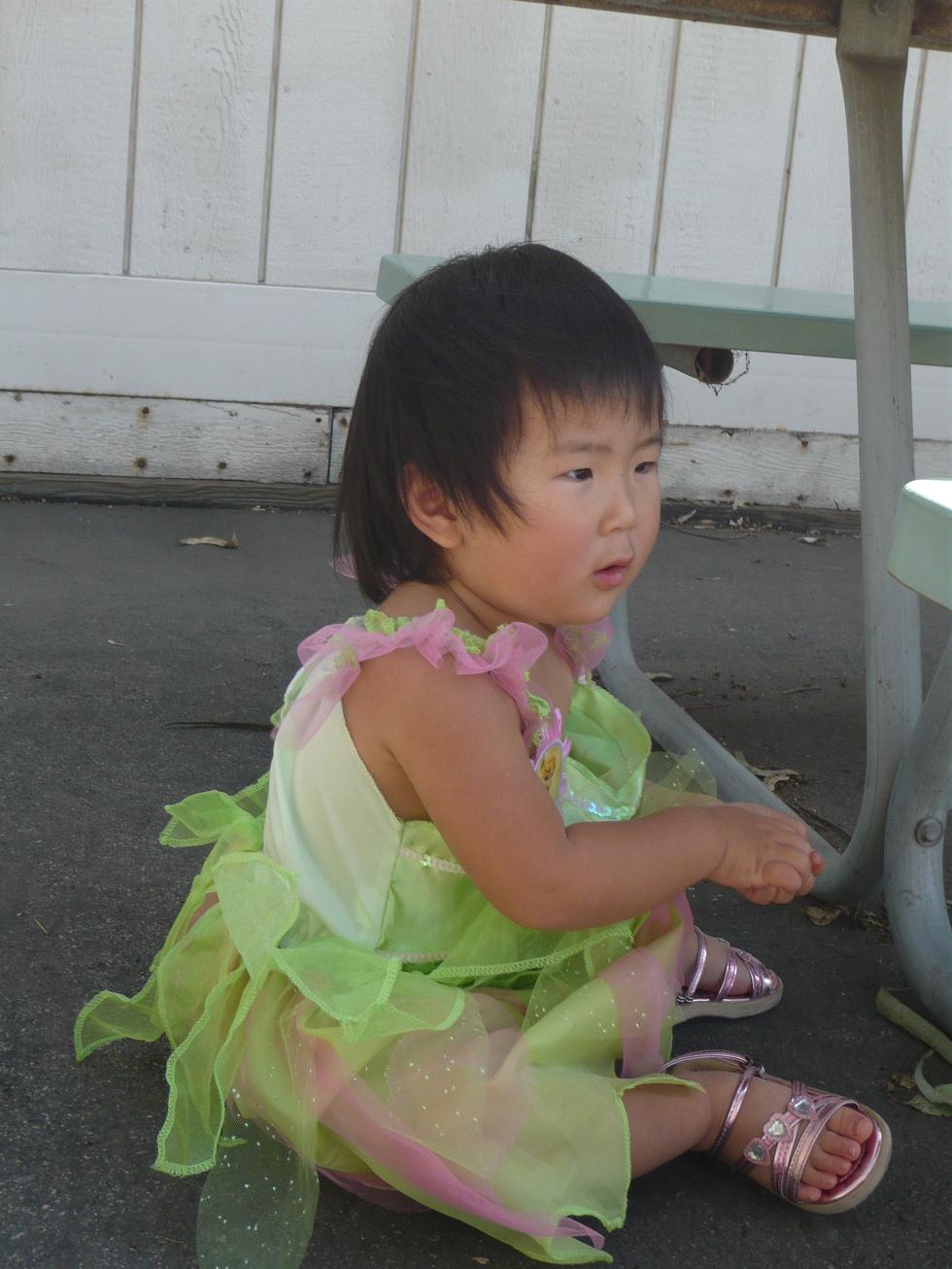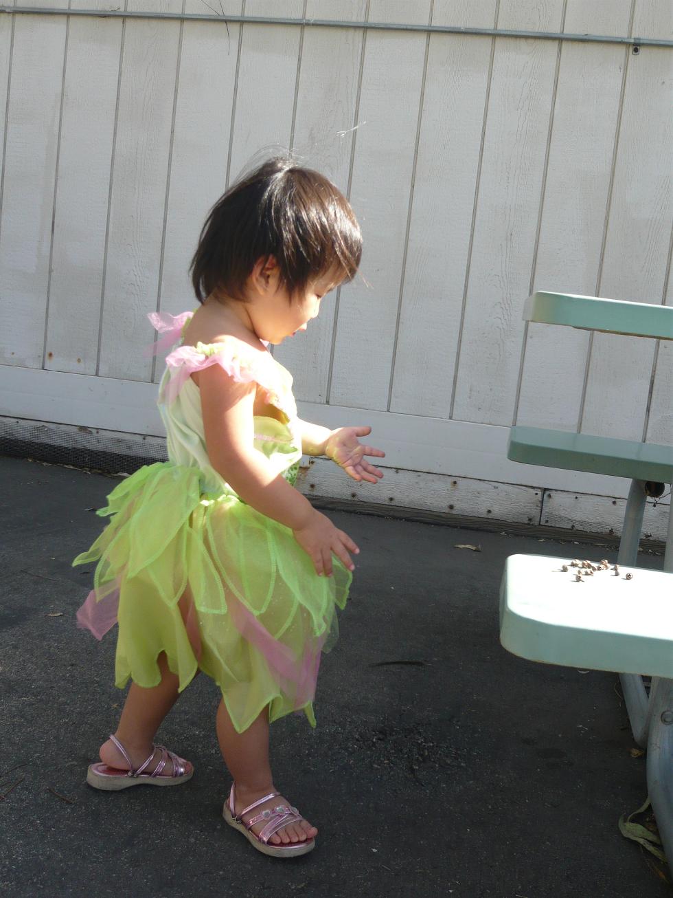 外に連れ出した途端 何故か「ティンカーベル 着る~ 着たいの!」とやる気に。