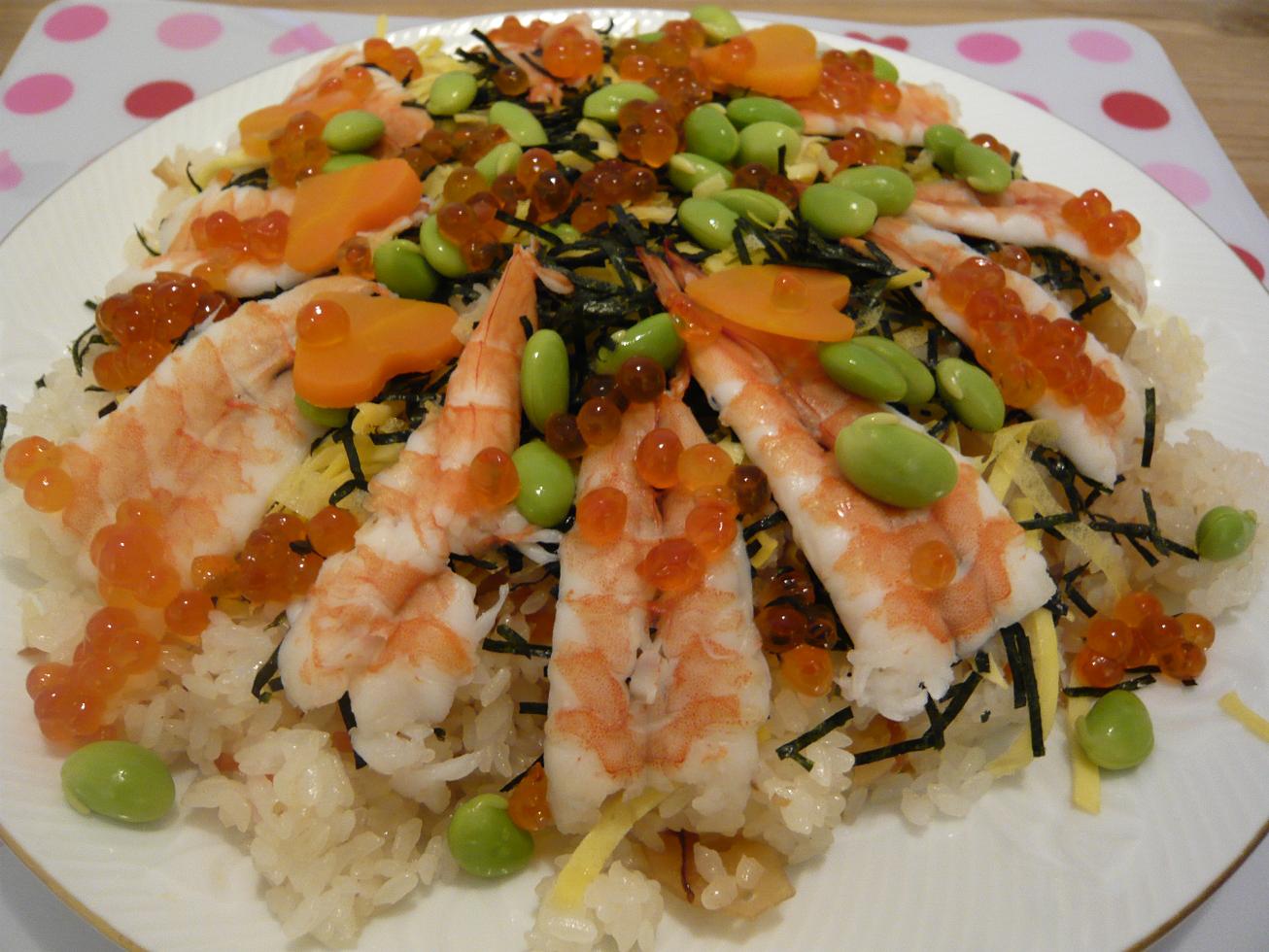 ・ ちらしずし・・・ヒメはひたすら「つぶつぶ」(いくら)狙い。