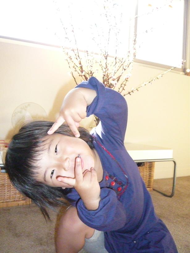 桃の花を飾ってみたら、俄然はしゃぎだしたヒメ。「写真撮って~」と大騒ぎ。