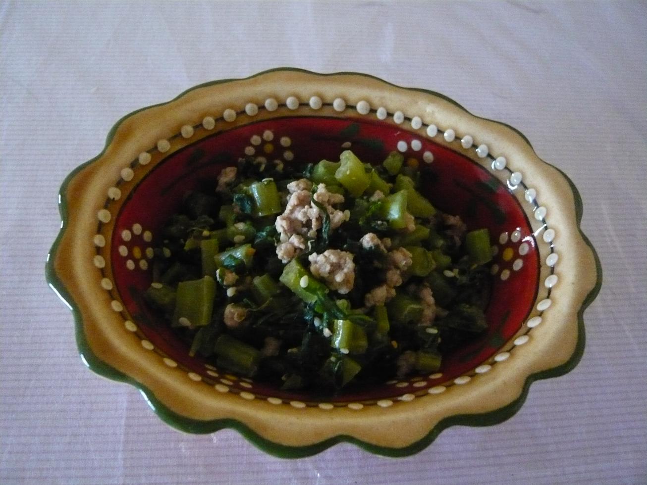 ゴマ、かつおぶしにひき肉も入れて ちょっと甘めのふりかけに。