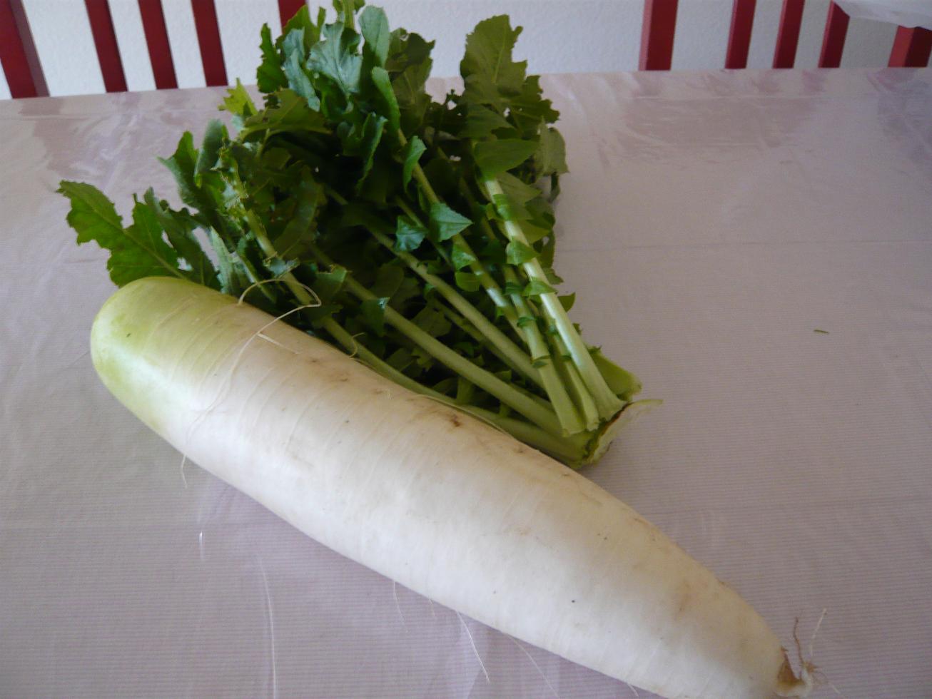 桃の花を買いに出かけたファーマーズマーケットで見つけた大根。
