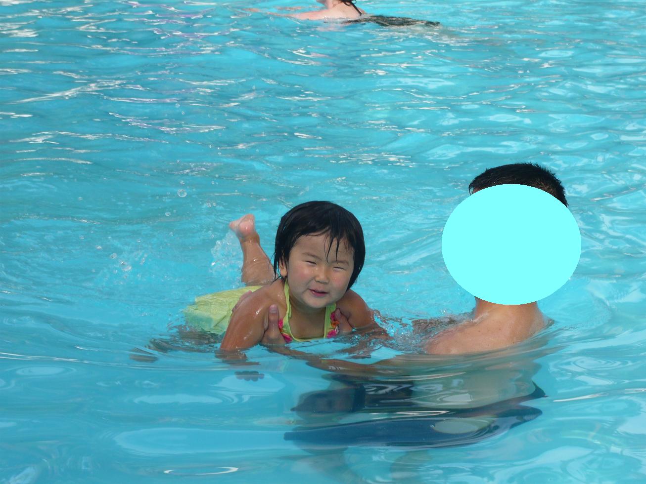 「ホントに行くの?」と渋るダンナを従え、朝は9時前からプールに繰り出し1時間半!