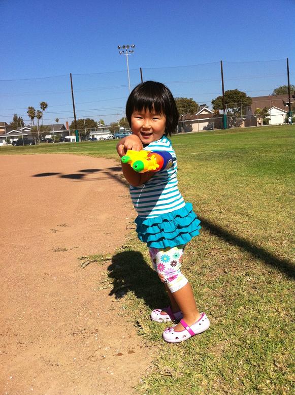 で、一番上の写真の水鉄砲をGet!(たくさんの景品の中からヒメが選んだのがこれ・・・)