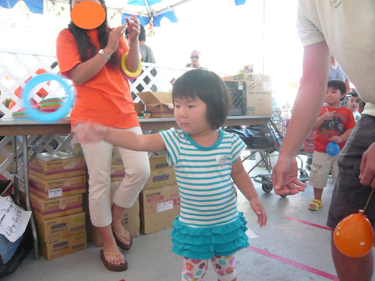 翌日も 2日連続となる夏祭りへ。この日は輪投げもくじ引き(?)も「参加賞」だったけど、