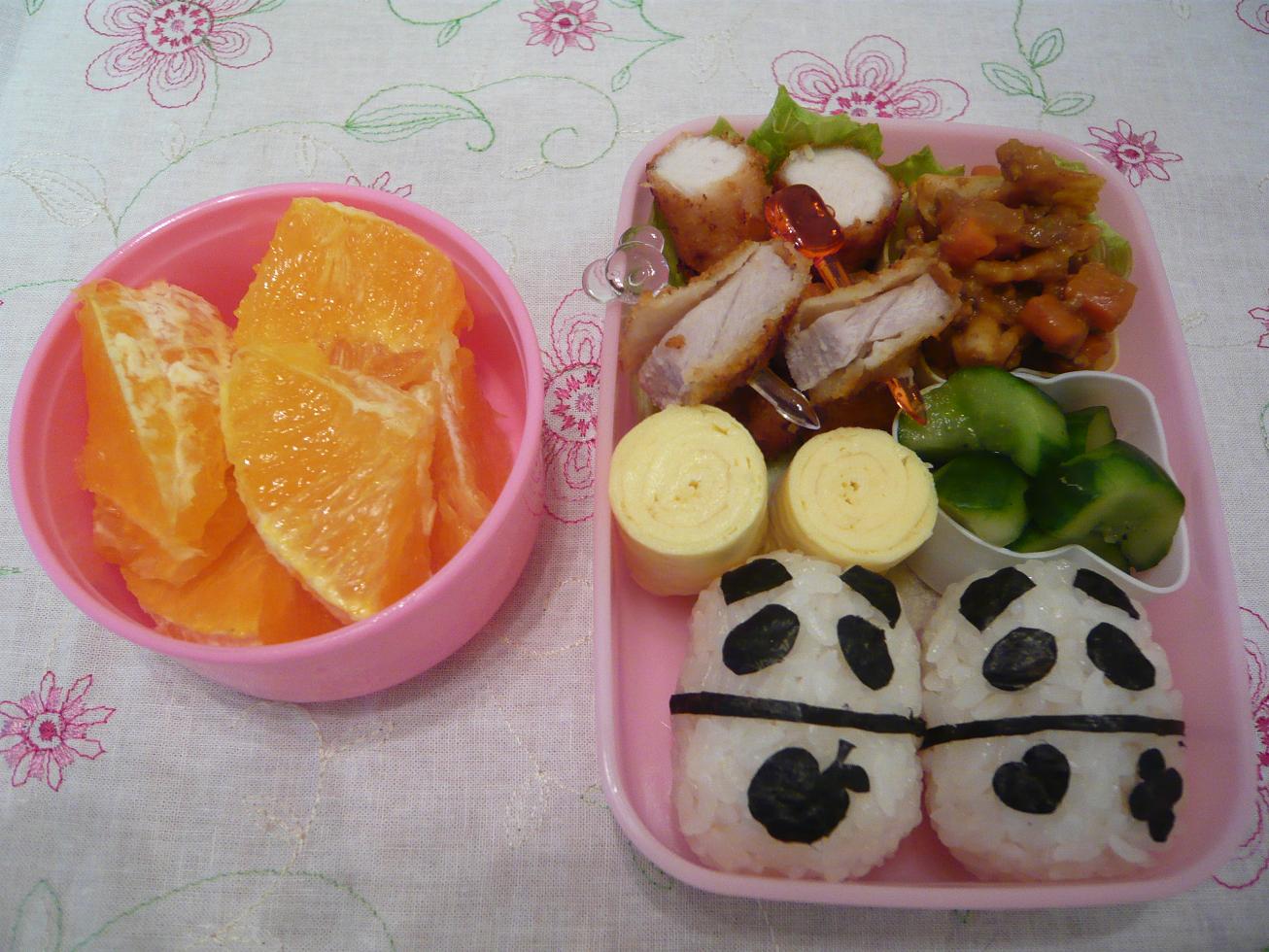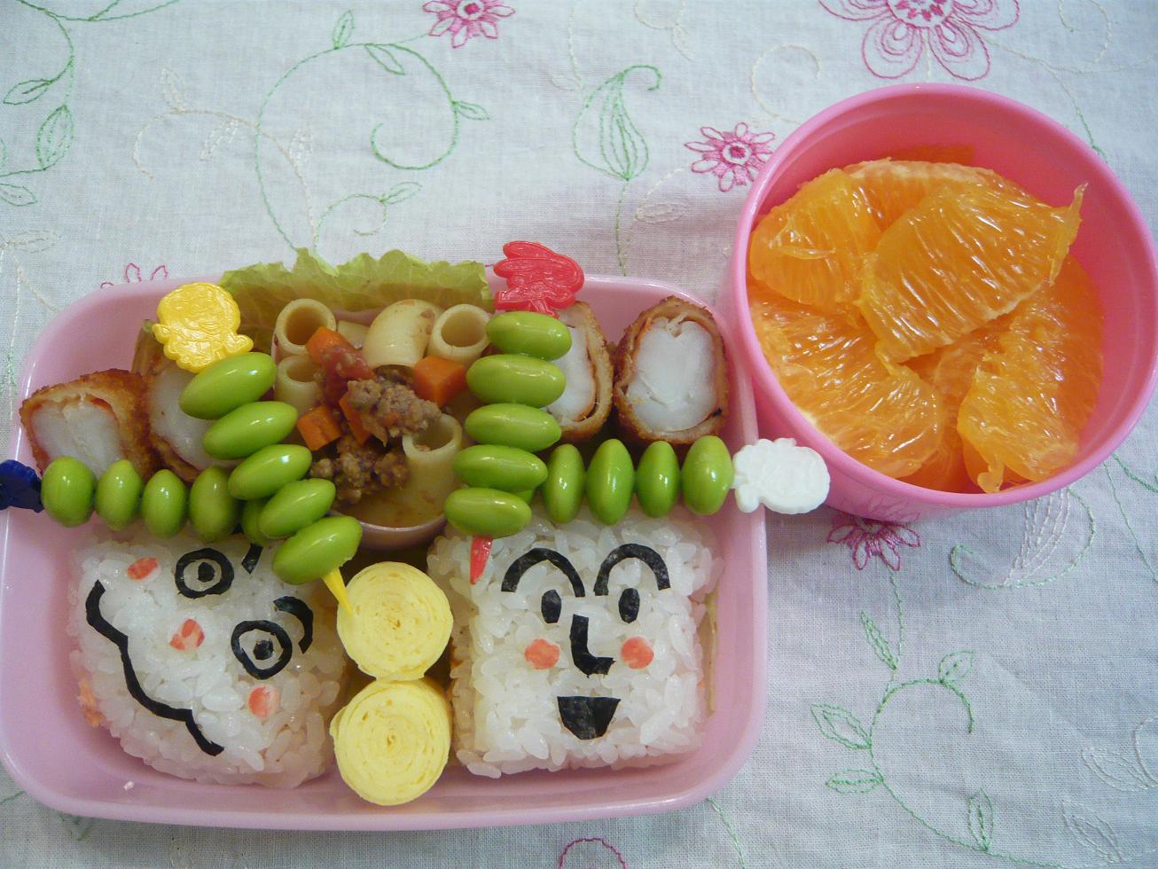 金曜日のお弁当。リクエストどおり カレーパンマンとしょくぱんまんのおにぎり。