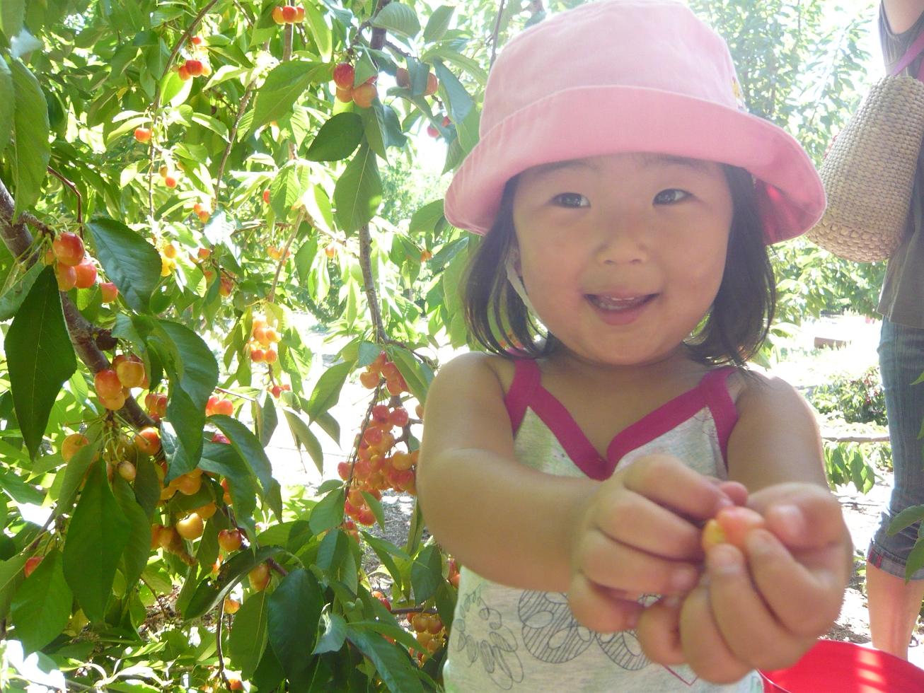 初日は2週間前にも行ったさくらんぼ狩りが予想以上に楽しかったのと