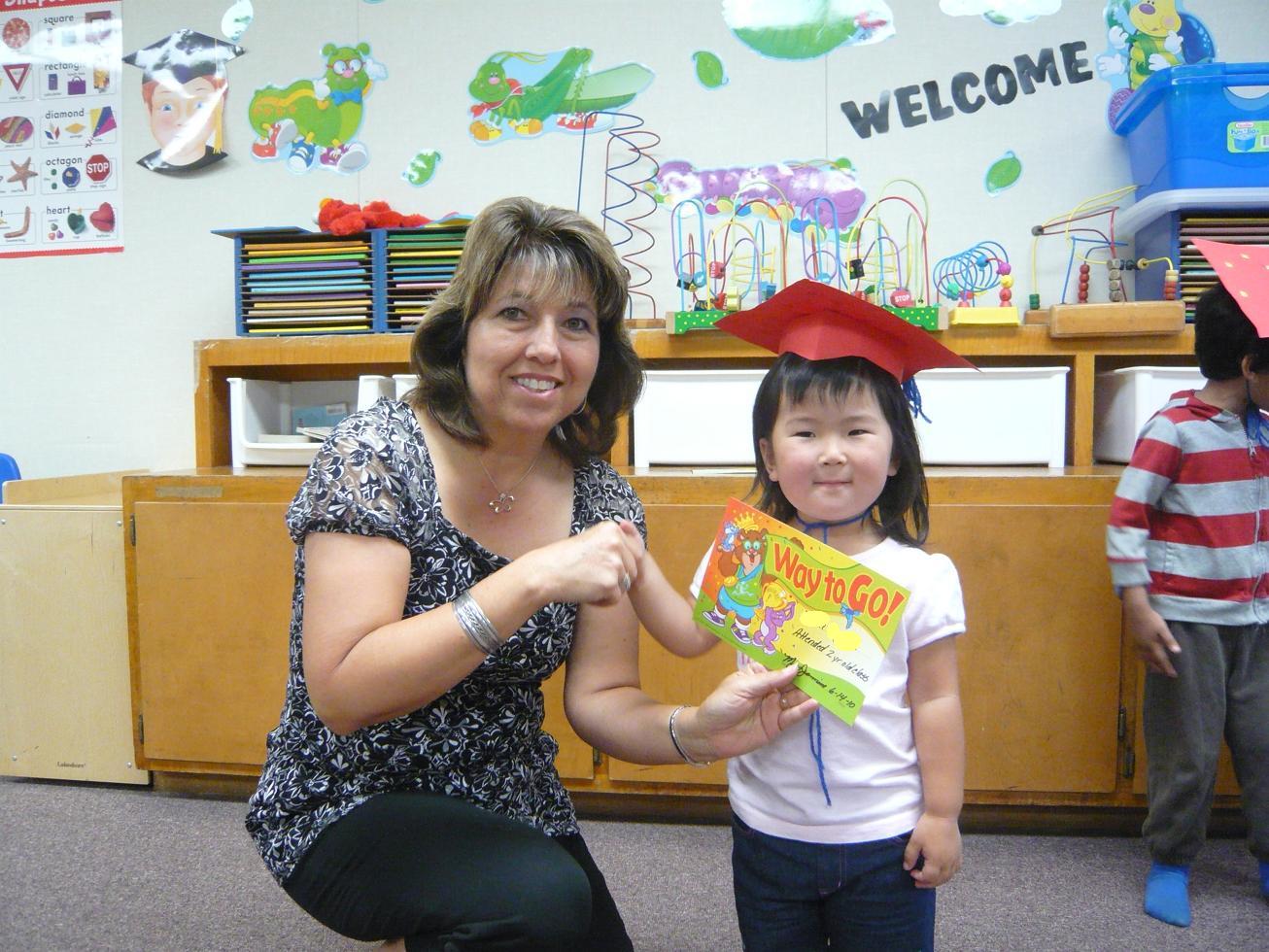 先生から卒業証書(もどき)を頂いて一緒に写真を撮ったり、と セレモニーをすっかり満喫。
