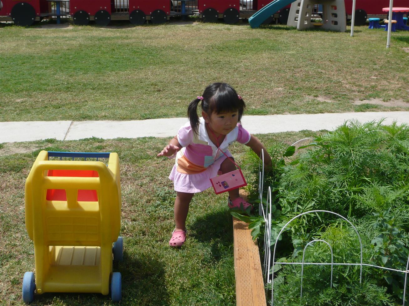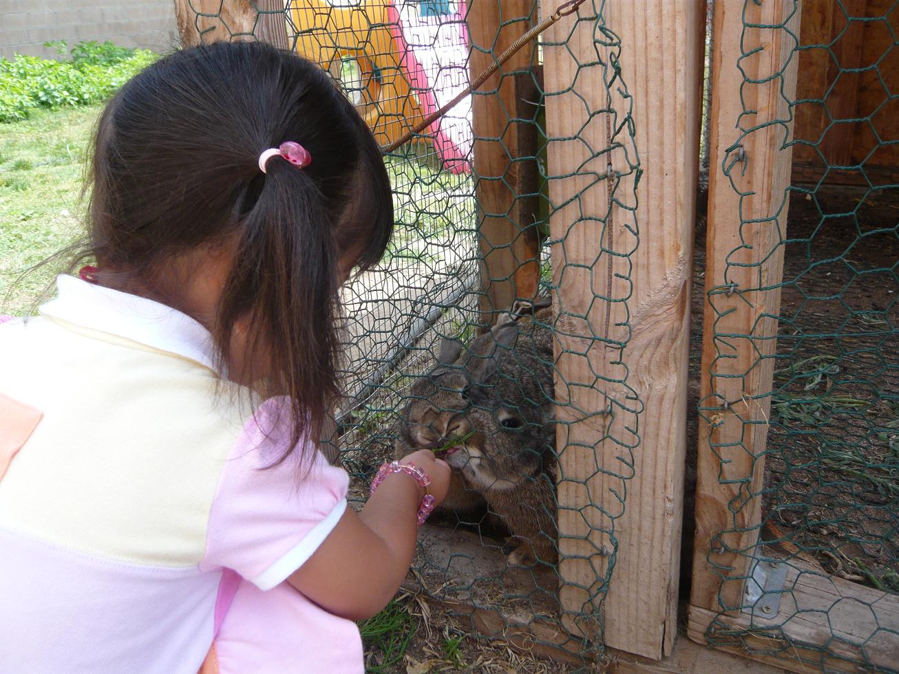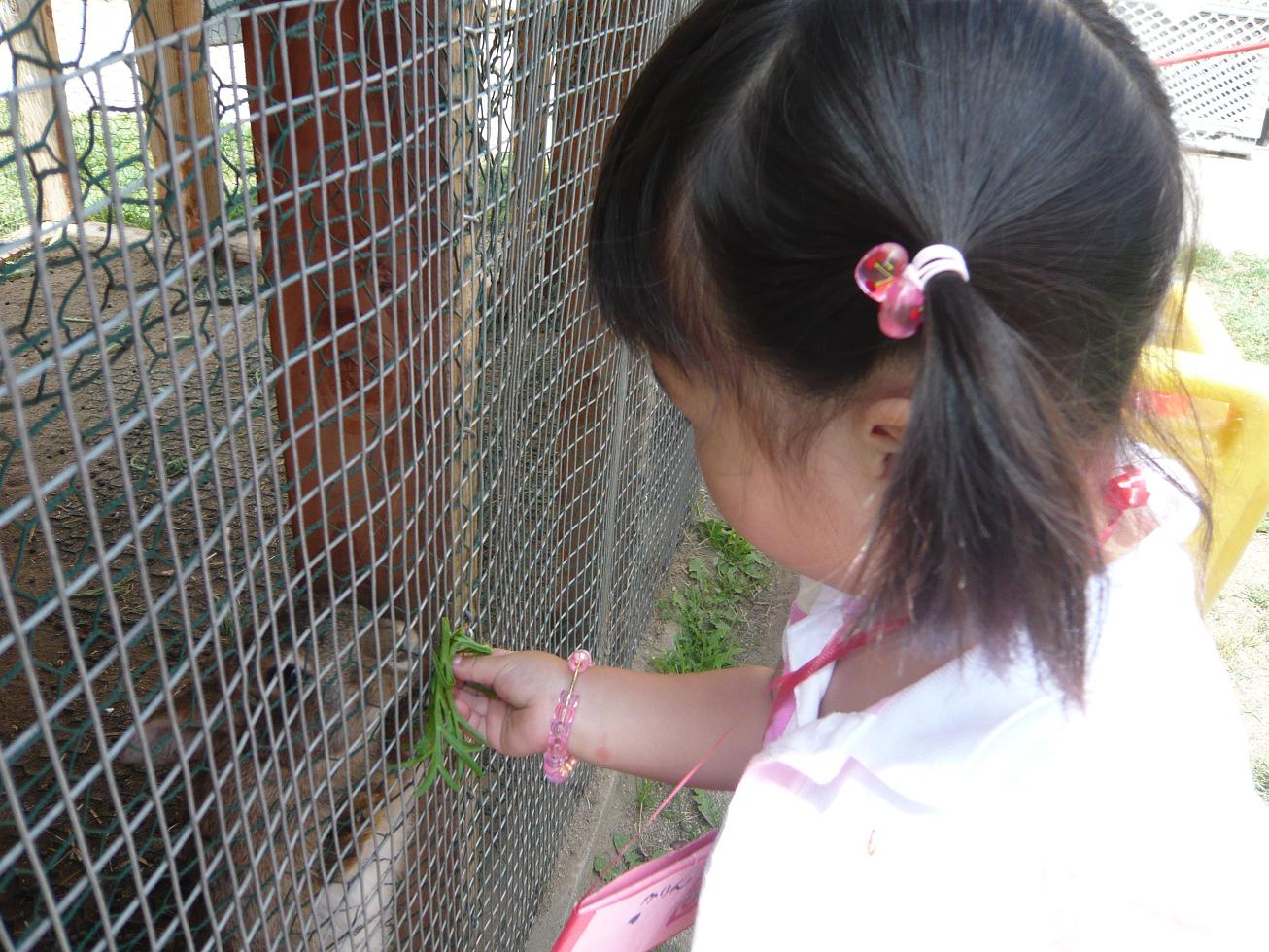 その後は園庭へGo! ウサギさんにご飯をあげたり、砂場で砂だらけになったり・・・