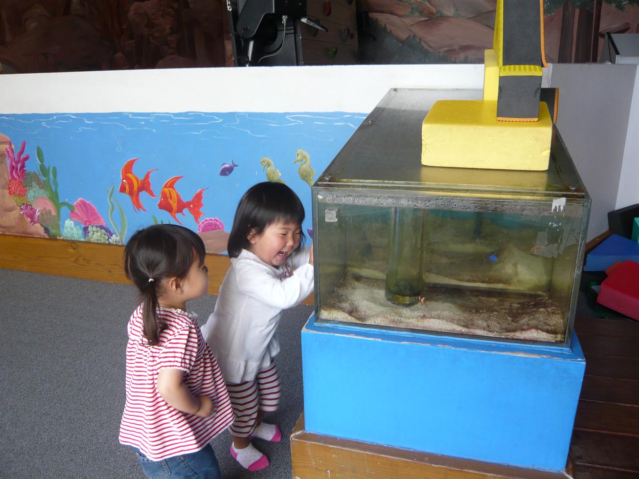 トランポリンは足を乗せるのも怖いらしく 近くまで行ってもすぐにUターン。