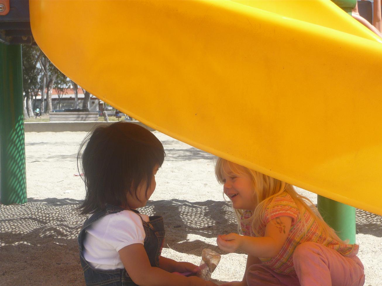 この間も公園で、白人の女の子と二人でお砂遊びを始めたヒメ。